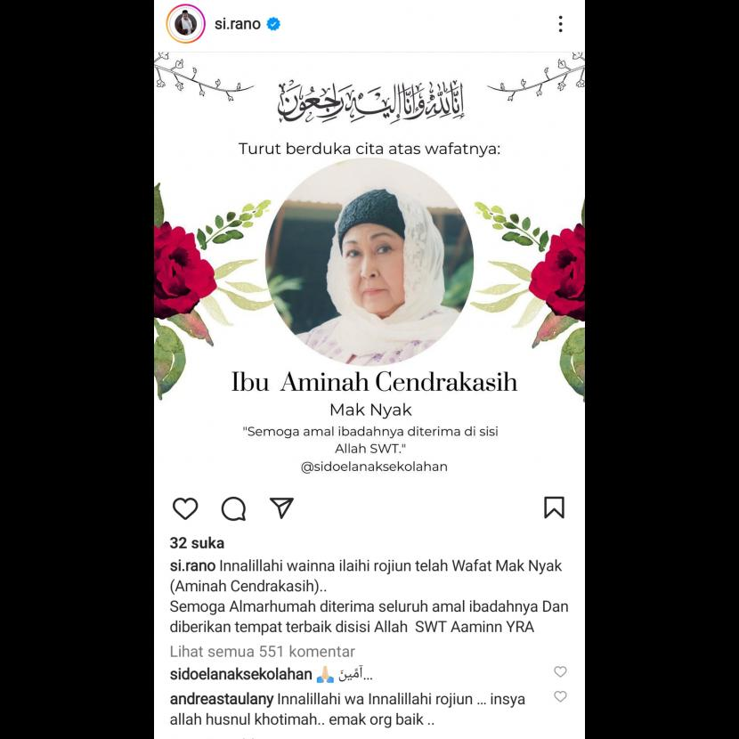 Aminah Cendrakasih meninggal dunia. Aminah Cendrakasih pemeran Mak Nyak Si Doel meninggal dunia, Kamis (21/12/2022). Foto: Republika KURUSETRA — Salam Sedulur… Bagi anak-anak yang hidup di era 1980-1990-an sedikit banyak pasti mengingat bagaimana fenomenalnya sinetron Si Doel Anak Sekolahan. Rano Karno menciptakan sebuah keluarga Betawi secara sempurna dengan menampilkan aktor dan aktris jempolan. Selain Rano […]
