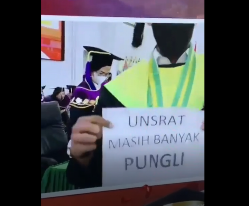 Pesan Pungli. Seorang wisudawan memberikan informasi tentang pungutan liar (pungli) di kampusnya dalam gelaran acara wisuda. Foto: Tangkapan layar. KURUSETRA — Salam Sedulur… Seorang mahasiswa Universitas Sam Ratulangi (Unsrat) melakukan aksi protes. Namun aksi protes tersebut dilakukan saat ia menjalani proses wisuda dengan mengungkapkan adanya pungutan liar (pungli) di kampusnya. Aksi tersebut pun viral di […]