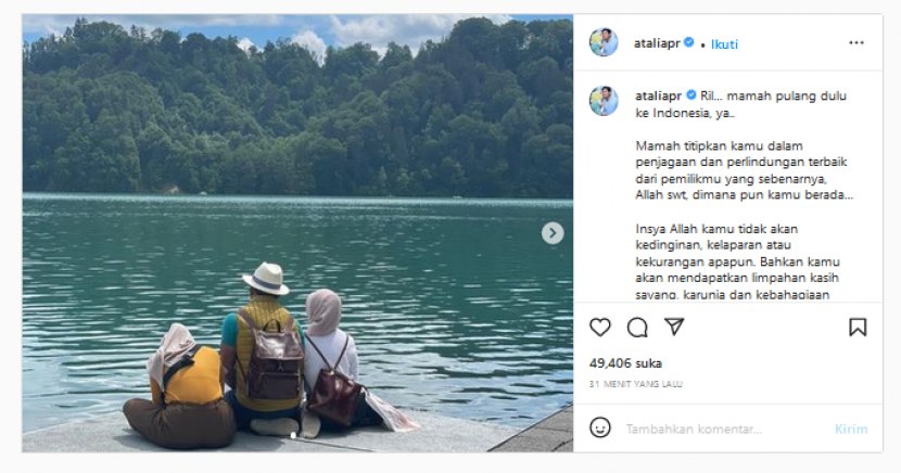 Surat Atalia untuk Eril: Ril, Mamah Titipkan Kamu dalam Penjagaan dan Perlindungan Allah