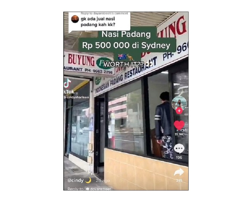 Nasi Padang di Australia. Seorang WNI yang menetap di Australia membagikan kisahnya membeli Nasi Padang di Sydney seharga Rp 500 ribu. Foto: Tangkapan Layar. KURUSETRA — Salam Sedulur… Berapa biasanya Anda membayar seporsi Nasi Padang di Indonesia? Rp 10 ribu atau Rp 25 ribu? Dengan harga Rp 25 ribu saja kita bisa mendapatkan lauk cukup […]