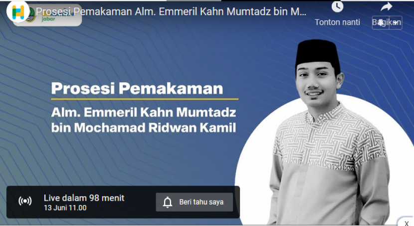 Tonton Live Streaming Pemakaman Eril Putra Ridwan Kamil di Sini